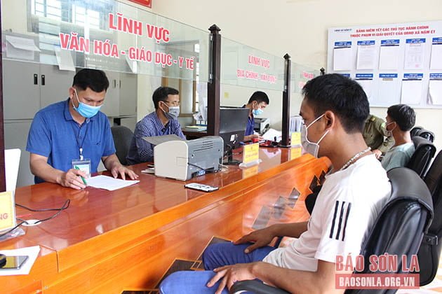 Người dân giao dịch tại Bộ phận tiếp nhận và trả kết quả xã Nặm Ét.