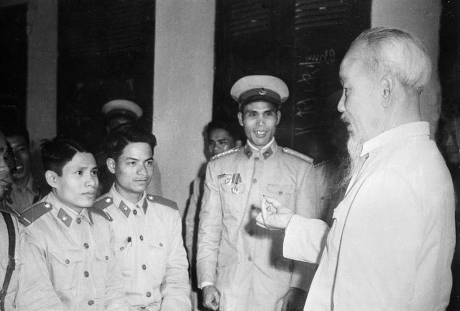 Chủ tịch Hồ Chí Minh thăm một đơn vị Cảnh sát nhân dân Thủ đô, tết Quý Mão, năm 1963. Ảnh: TTXVN
