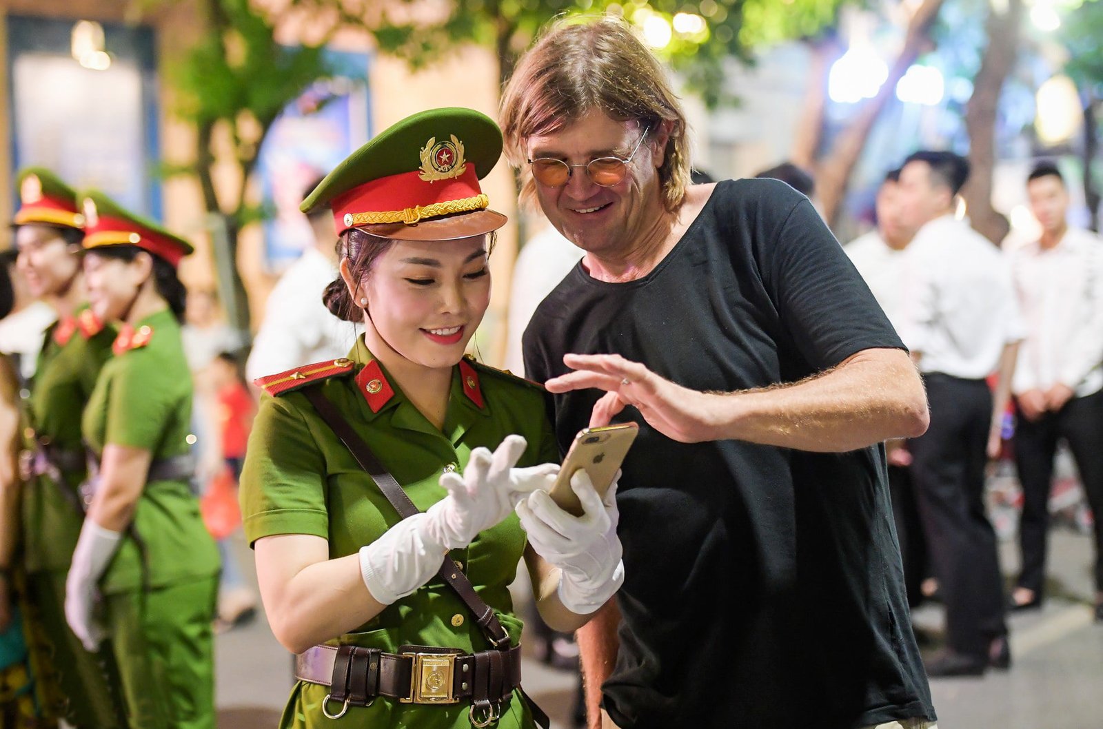 Nữ cảnh sát nhân dân hướng dẫn du khách quốc tế tại Hà Nội. (Ảnh tư liệu)