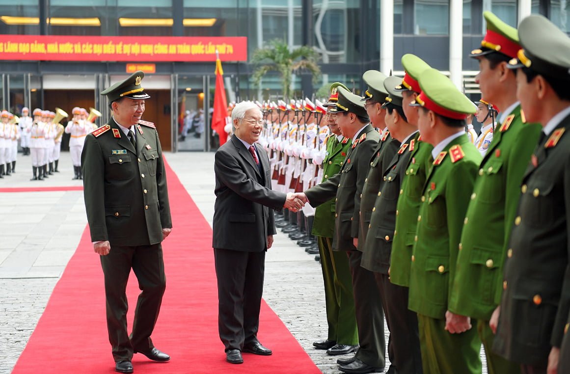 Tổng Bí thư, Chủ tịch nước Nguyễn Phú Trọng duyệt đội danh dự công an nhân dân. Ảnh: TTXVN