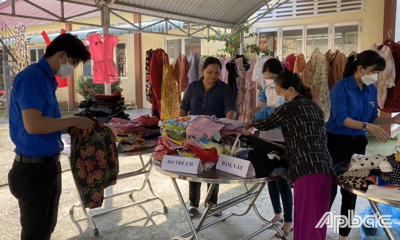 Gian hàng “0 đồng” của xã Lương Hòa Lạc thường xuyên tặng quà, quần áo cho người nghèo.