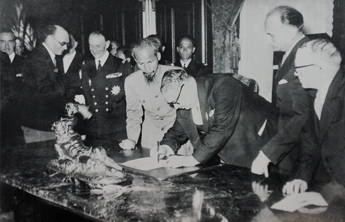 Chủ tịch Hồ Chí Minh và Bộ trưởng Hải ngoại Pháp ký bản Tạm ước Việt – Pháp, ngày 14-9-1946. Nguồn: nhandan.vn