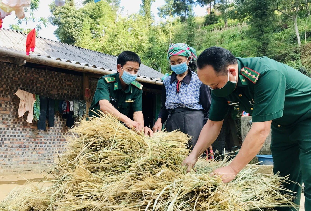 Cán bộ, chiến sĩ Đồn Biên phòng Si  Ma Cai, tỉnh Lào Cai giúp dân. Nguồn: baolaocai.vn