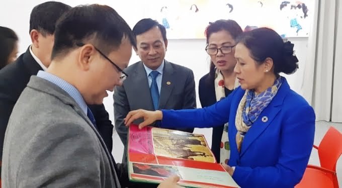 Hội hữu nghị Việt Nam – Italia chia sẻ nội dung của tập truyện với Chủ tịch Liên hiệp các tổ chức hữu nghị Việt Nam Nguyễn Phương Nga