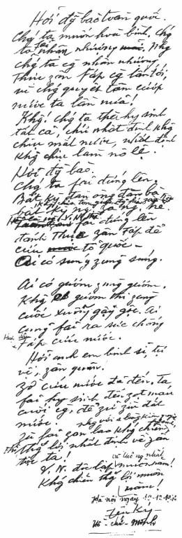 Bút tích Lời kêu gọi toàn quốc kháng chiến của Chủ tịch Hồ Chí Minh (19/12/1946). Ảnh tư liệu