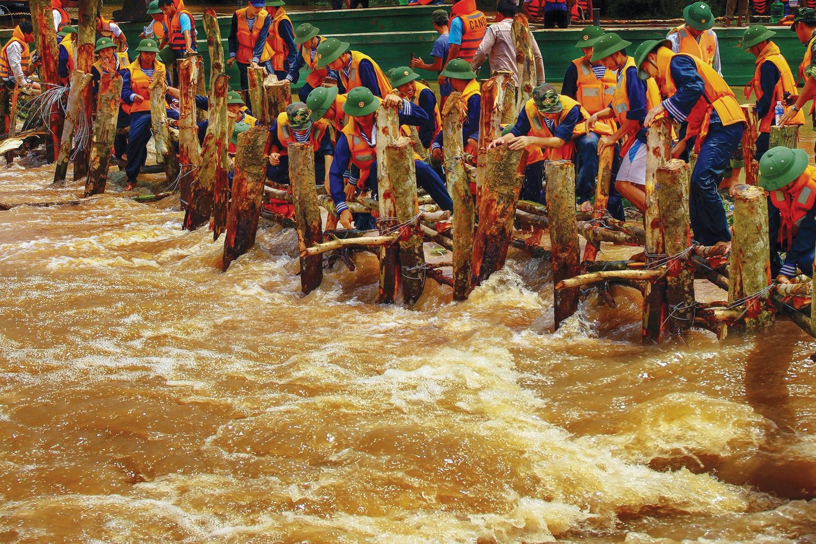 Bộ đội giúp dân chống lũ ở đồng bằng sông Cửu Long. Ảnh: Tư liệu