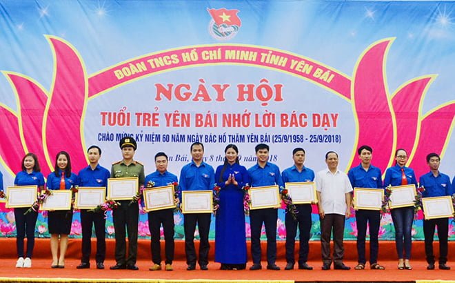 Các tập thể, cá nhân có thành tích xuất sắc trong thực hiện Chỉ thị 05 của Bộ Chính trị được khen thưởng tại Ngày hội “Tuổi trẻ Yên Bái nhớ lời Bác dạy” nhân kỷ niệm 60 năm Ngày Bác Hồ thăm Yên Bái.