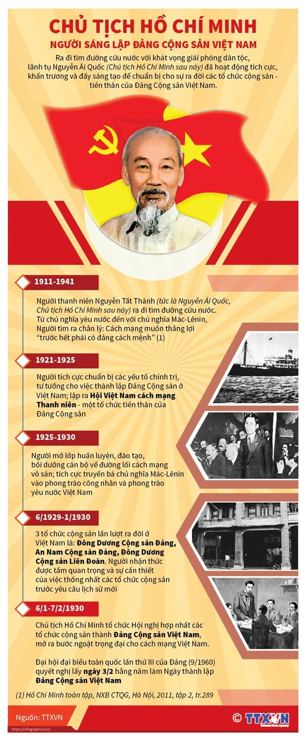 Vai trò của Chủ tịch Hồ Chí Minh trong việc tổ chức, sáng lập ra Đảng Cộng sản Việt Nam là vô cùng to lớn. Song, vấn đề có ý nghĩa đặc biệt quan trọng là Người đã xây dựng và rèn luyện Đảng ta thành một đảng kiên cường, giàu bản lĩnh và kinh nghiệm trong lãnh đạo cách mạng cũng như xây dựng Đảng trong sạch, vững mạnh.