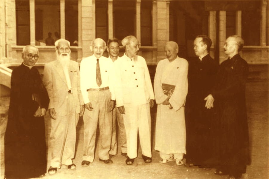 Chủ tịch Hồ Chí Minh nói chuyện thân mật với các đại biểu tôn giáo trong Quốc hội nước Việt Nam Dân chủ Cộng hòa năm 1960. Ảnh www.baochinhphu.vn