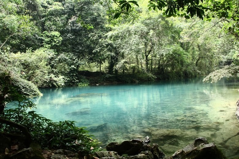 | Dòng suối Lê Nin trong xanh dưới chân núi Các Mác. |