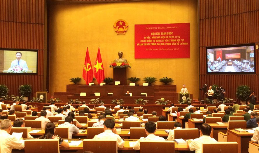 Quang cảnh hội nghị toàn quốc sơ kết 3 năm thực hiện Chỉ thị số 05-CT/TƯ của Bộ Chính trị (khóa XII) về “Đẩy mạnh học tập và làm theo tư tưởng, đạo đức, phong cách Hồ Chí Minh”, năm 2019.