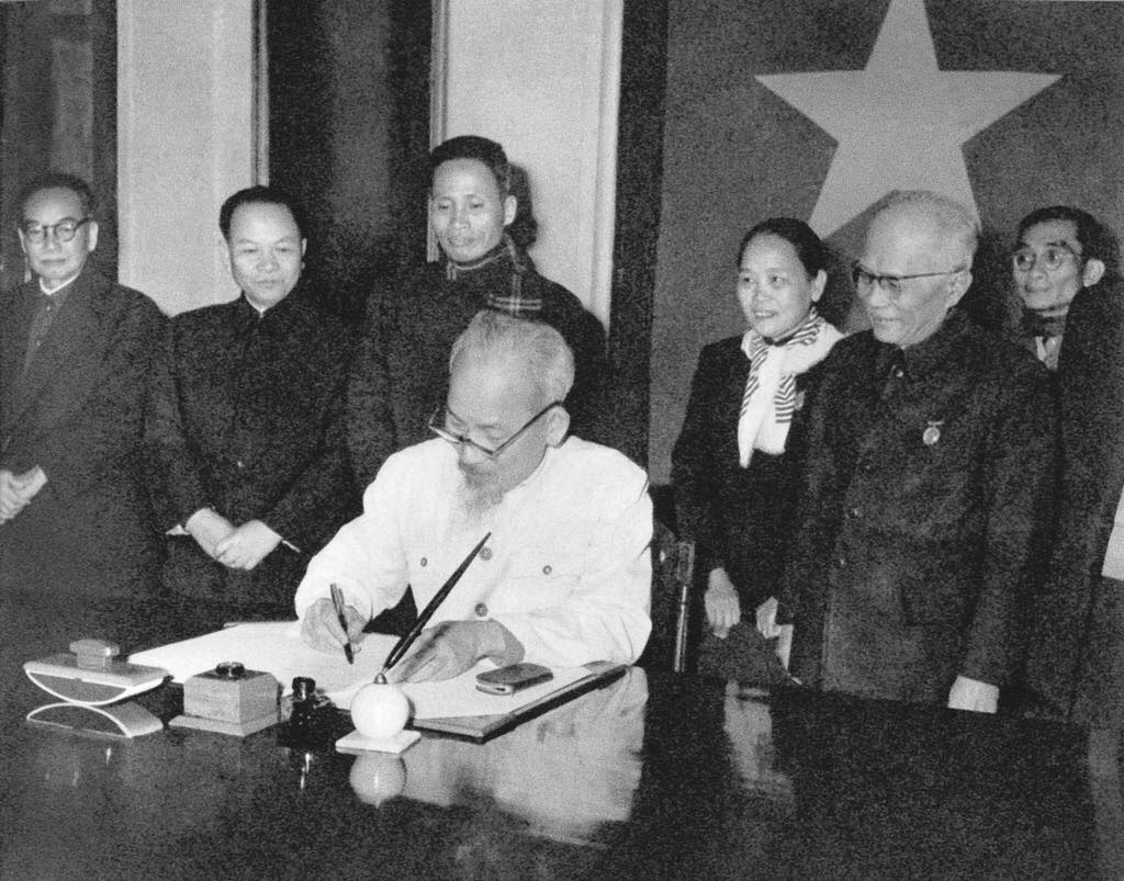Chủ tịch Hồ Chí Minh ký sắc lệnh công bố Hiến pháp năm 1959. Ảnh: TTXVN